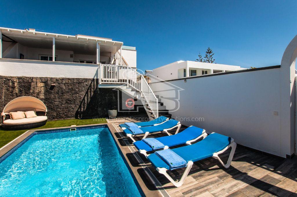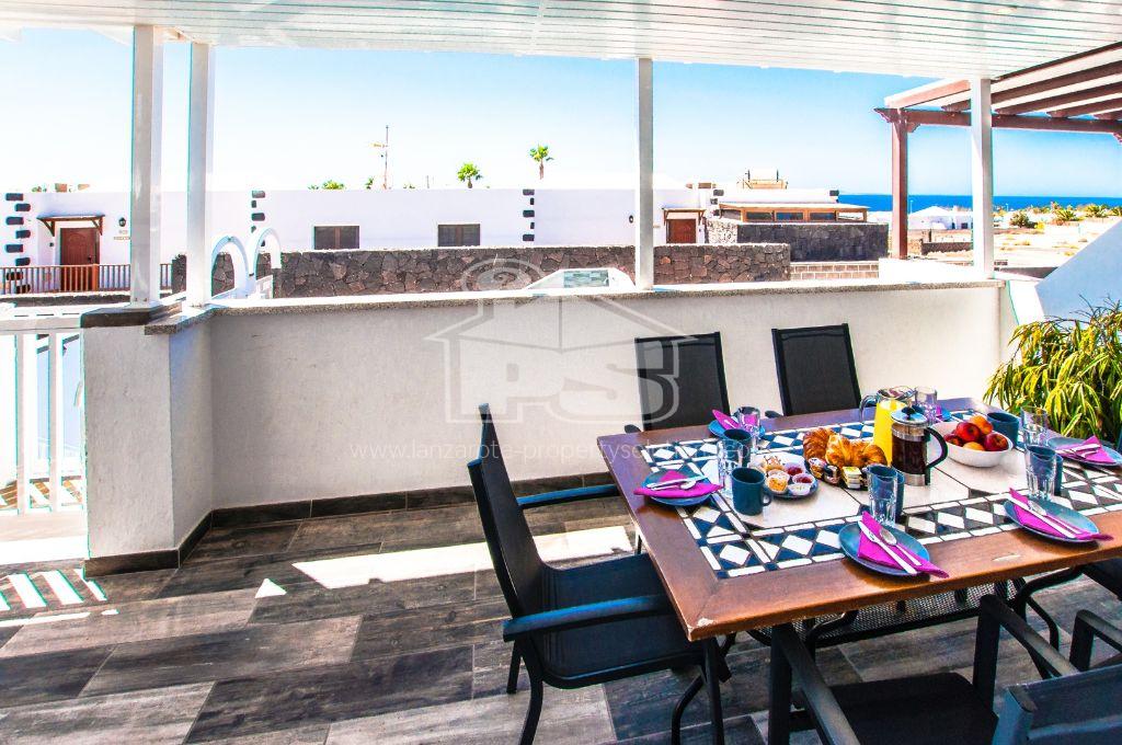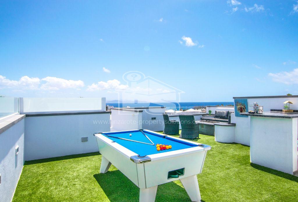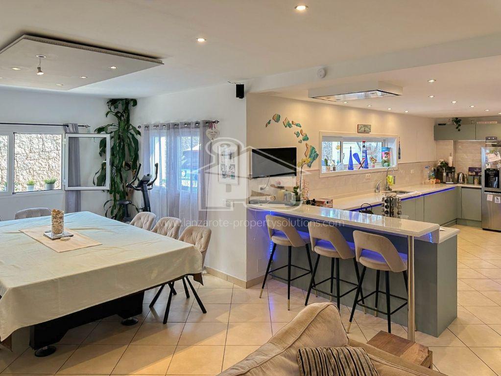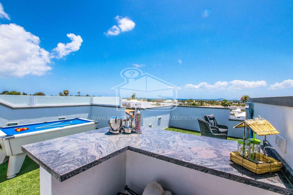 Discover this unique property consisting of two villas located just a few minutes' walk from Flamingo Beach. The ground floor villa features three spacious bedrooms, two modern bathrooms, a large fully equipped kitchen, and a bright living room. Upstairs, you will also find three bedrooms, two bathrooms, a large terrace with a heated pool and a jacuzzi, perfect for moments of relaxation. Each villa benefits from air conditioning in all rooms for optimal comfort. The exterior is a real asset with a parking space. The large upstairs terrace offers a stunning view of the ocean, and the property also features a rooftop equipped with a billiard table, a bar, and a spectacular view of Fuerteventura. Located in a quiet and secure neighborhood, this villa is ideal for a large family or as a rental investment. Enjoy the immediate proximity to Flamingo Beach and all local amenities. Don't miss this exceptional opportunity to acquire not one but two villas in one of the best areas of Playa Blanca. For more information or to schedule a visit, contact us today.