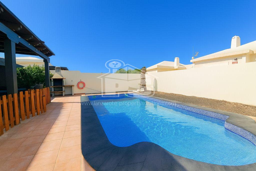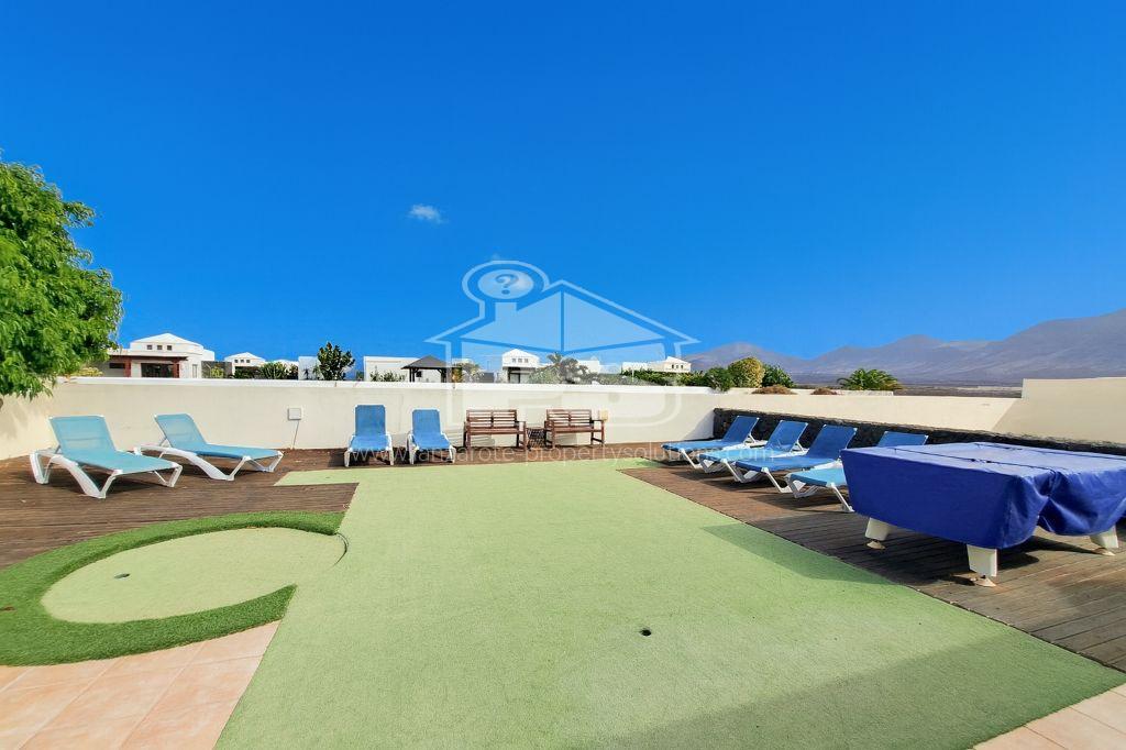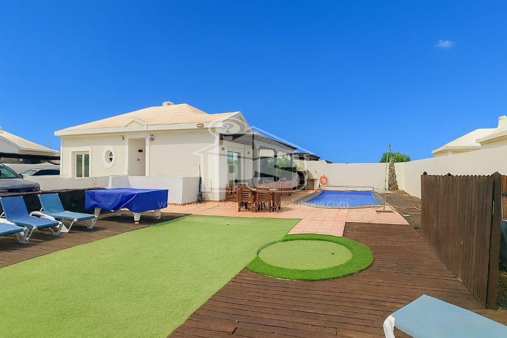 We present exclusively this large villa in immaculate condition which is situated in walking distance to the town centre with everything you could want in your new property here in Playa Blanca. With 4 bedrooms and 3 bathrooms, with quality materials throughout it is sold furnished. Air conditioned throughout with a heated swimming pool this property also comes with its own putting green outside. Private off road parking, with the layout of this property there are a number of options in terms of how you can utilise the space. Leading off the lounge via large patio doors is a large, covered terrace to enjoy your evenings. With a separate kitchen and utility room, this property has a significant outside area and tremendous mountain views, with outside seating areas, the property is South facing so you can enjoy all day sun this is definitely one to put on your viewing list.